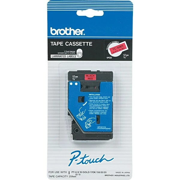Brother® 1/2″ Black on red tape features exclusive laminated tape process that resists water, grease or grime and standard adhesive designed for smooth flats surfaces. Tape is suitable for indoor/outdoor use and ideal for P-Touch label makers.