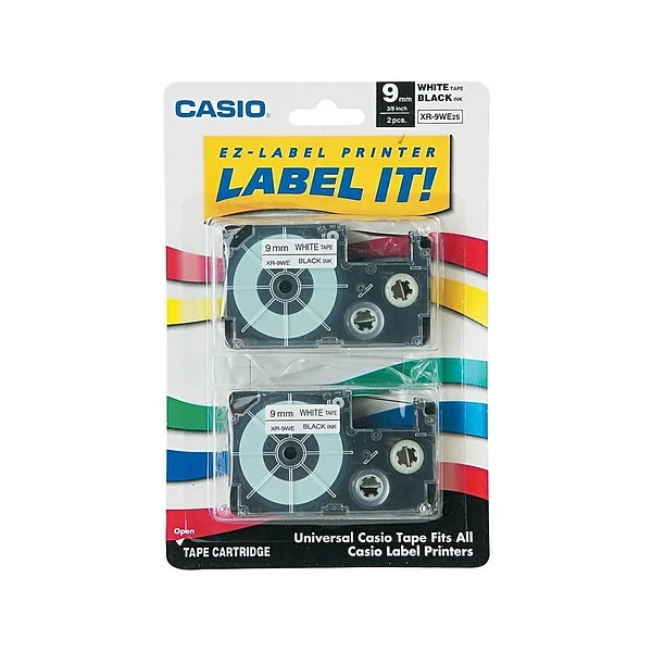 Create highly legible labels for the home or office with this black-on-white label tape. This Casio label maker tape is great for small or large organizing jobs.