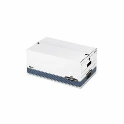 Bankers Box® Bankers Box Medium-Duty FastFold File Storage Boxes, String & Button, Letter/Legal Size, White/Blue, 4/Carton (0002501)