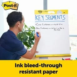 - Ink-Bleed Through Resistant Paper – Large white recycled premium self-stick flip chart paper that resists marker bleed-through to keep great ideas on the page, not on what’s under the page. Made with 30% recycled material.