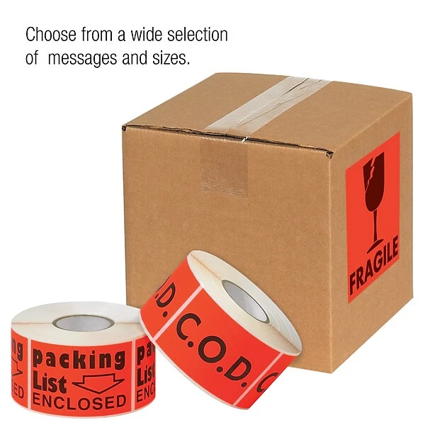- Shipping labels boldly display instructions and warnings
