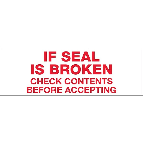 Tape Logic™ Pre printed “If Seal Is Broken” carton sealing tape in red/white color measures 2″ x 55 yds and has strong adhesive. Pressure sensitive tape communicates handling instructions and seals at the same time, sold as 36 per case.