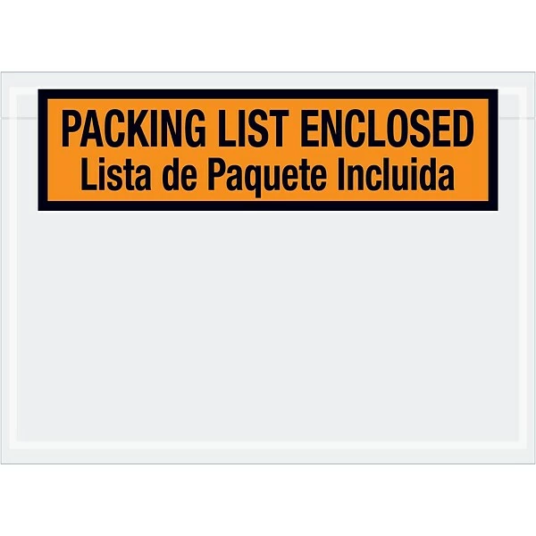 - Packing List Envelopes are pre-printed with “Packing List Enclosed” in both English and Spanish, on heavy 2 Mil poly